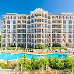 Tijdens een verblijf in Harmony Suites Apartment Sveti Vlas van 47 m² kunnen gasten zich ontspannen op een terras op 2 km afstand van het attractiepark Sunny Beach Central. Bij het 1-slaapkamer appartement hoort een privézwembad met een bubbelbad en een bardienst.